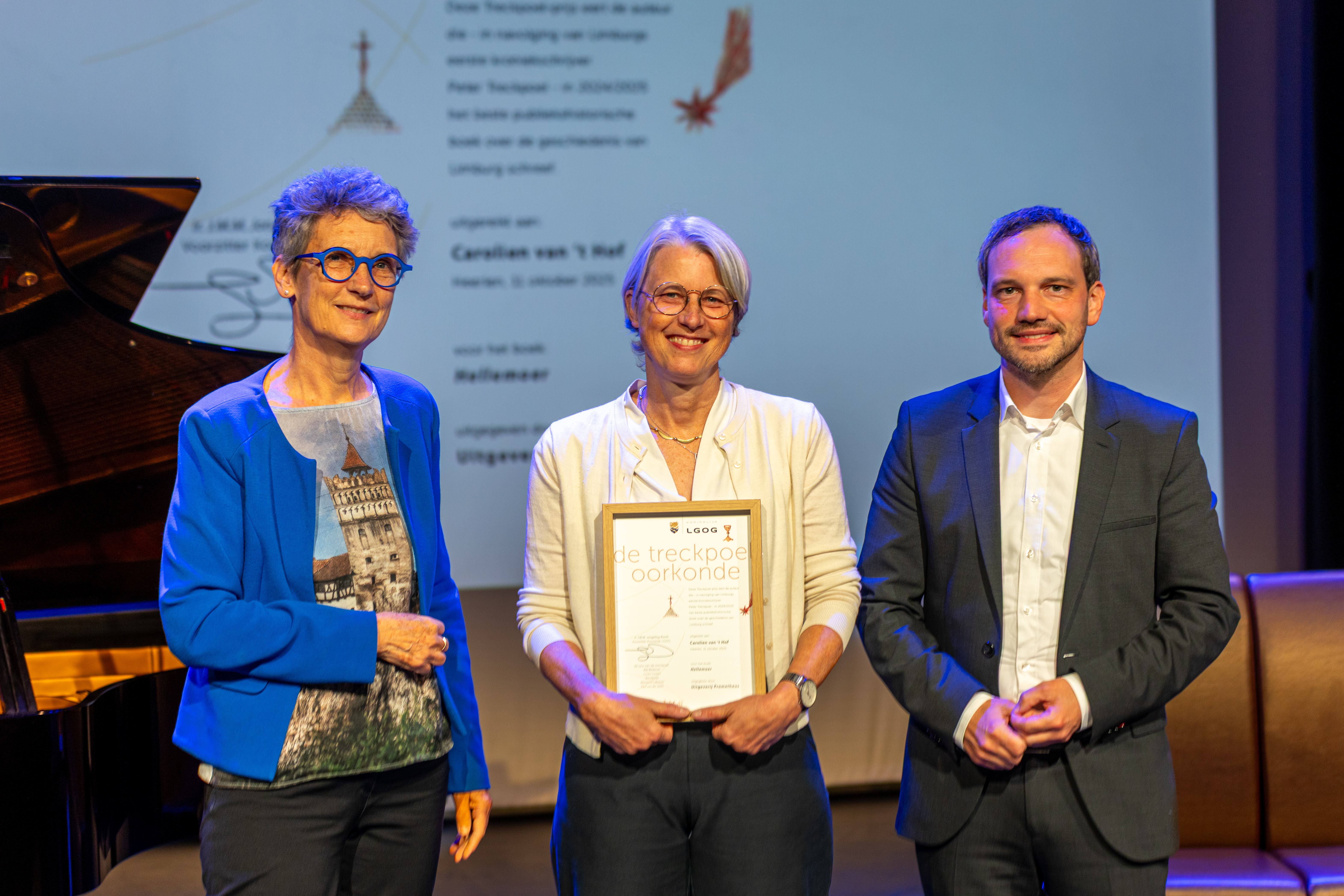 Carolien van ‘t Hof, auteur van de historische roman Hellemoer, heeft de LGOG Treckpoel-prijs gewonnen. Deze prijs van het Koninklijk Limburgs Geschied- en Oudheidkundig Genootschap werd op zaterdag 11 oktober in Heerlen uitgereikt door wethouder Jordy Clemens en Joke Jongeling, voorzitter van het Koninklijk LGOG. De prijs werd uitgereikt tijdens de 1e editie van de Limburgse Erfgoed Dag, een nieuw evenement van en voor de Limburgse erfgoedsector.